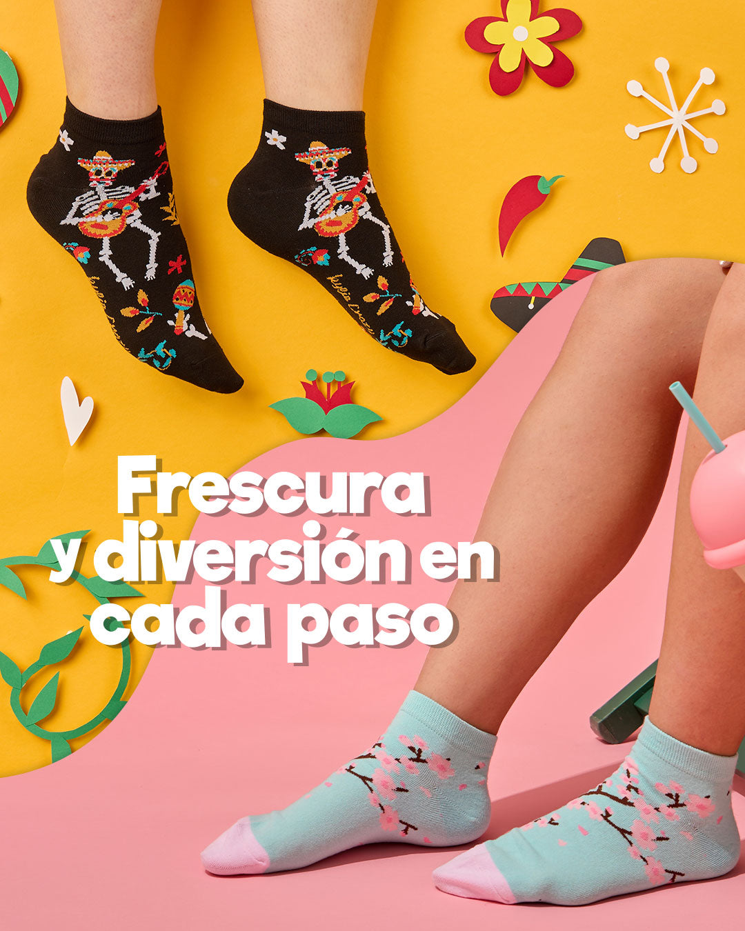 Tu outfit empieza en los calcetines. Nuestros diseños transmiten energía, alegría y personalidad.