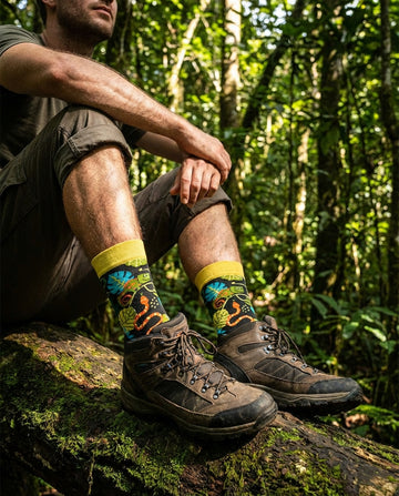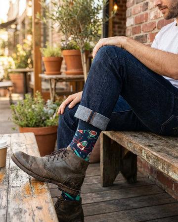 Includes 4 pairs of original socks with unique designs : Beer, Chameleon, Octopus and Space Monsters.